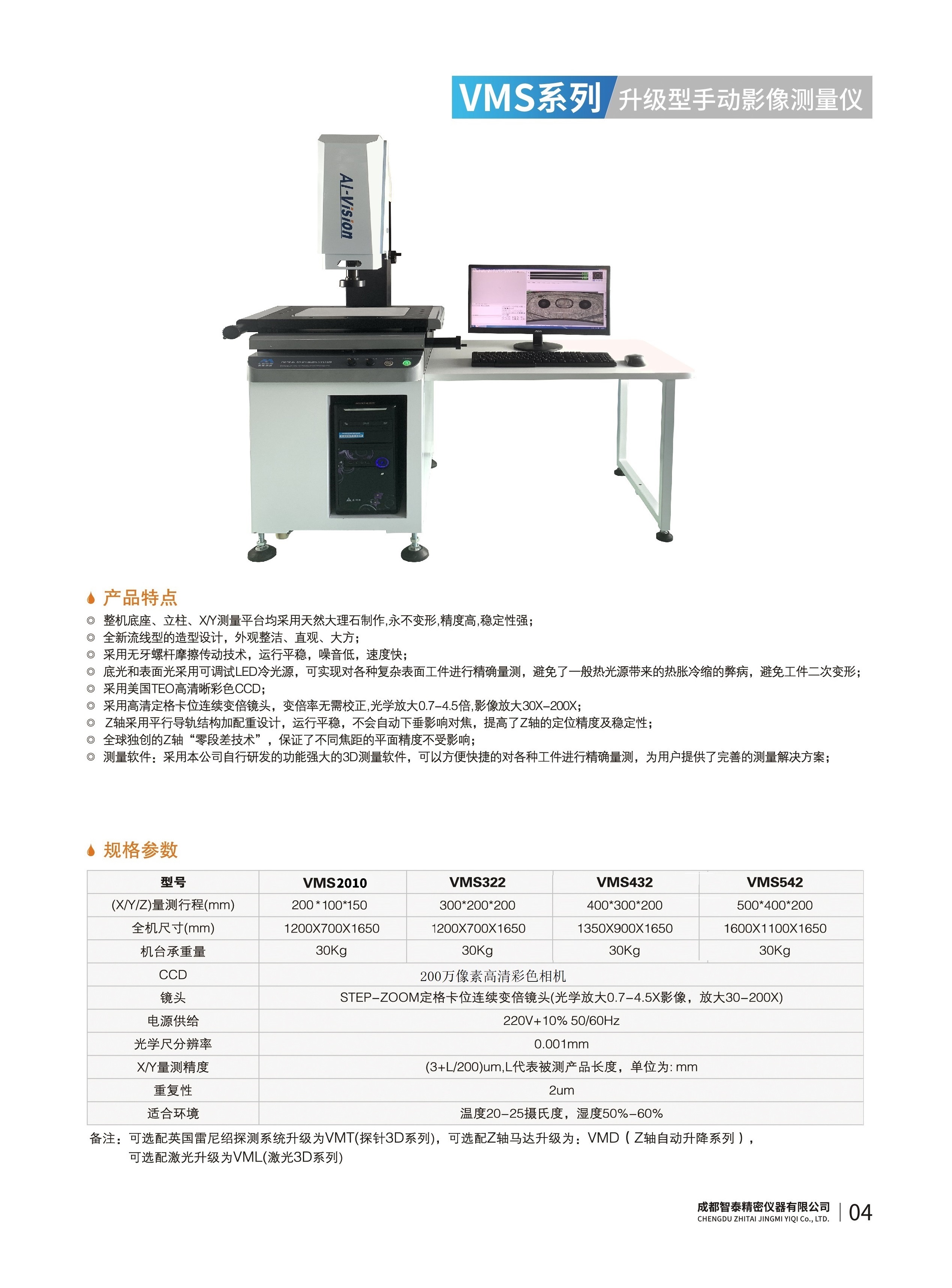 成都智泰精密儀器有限公司專注于精密測(cè)量?jī)x器,人工智能,智能制造領(lǐng)域,專業(yè)從事智能視覺(jué)自動(dòng)化檢測(cè)解決方案的貿(mào)易型企業(yè)。公司成立于2011年,位于天府之國(guó)成都,現(xiàn)有行業(yè)精英十余人,辦公倉(cāng)儲(chǔ)面積200余平米。 公司主要產(chǎn)品為精密光學(xué)影像測(cè)量?jī)x,精密輪廓形狀測(cè)量?jī)x,精密機(jī)器人定位系統(tǒng),精密智能視覺(jué)尺寸檢測(cè)儀器,精密表面缺陷智能檢測(cè)設(shè)備,工業(yè)工程特種機(jī)器人。 公司憑借過(guò)硬的技術(shù)實(shí)力和產(chǎn)品方案,率先進(jìn)入智能視覺(jué)自動(dòng)化檢測(cè)領(lǐng)域,推廣以精密智能視覺(jué)自動(dòng)化檢測(cè)為基礎(chǔ)的機(jī)器人自動(dòng)化應(yīng)用,公司不斷整合上下游的資源,擁有巨大的全產(chǎn)業(yè)鏈優(yōu)勢(shì)。客戶群體覆蓋了我國(guó)精密制造業(yè)的多數(shù)領(lǐng)域,包括航空、航天、軍工、汽車(chē)、新能源、光伏、食品,精密電子、精密機(jī)械、模具、PCB、LCD、五金、塑膠、醫(yī)療、教育、計(jì)量及科研院所等行業(yè)。 公司創(chuàng)新的產(chǎn)品能滿足生產(chǎn)與制造行業(yè)客戶的要求,訓(xùn)練有素的工程師能及時(shí)提供多種技術(shù)服務(wù),如解...